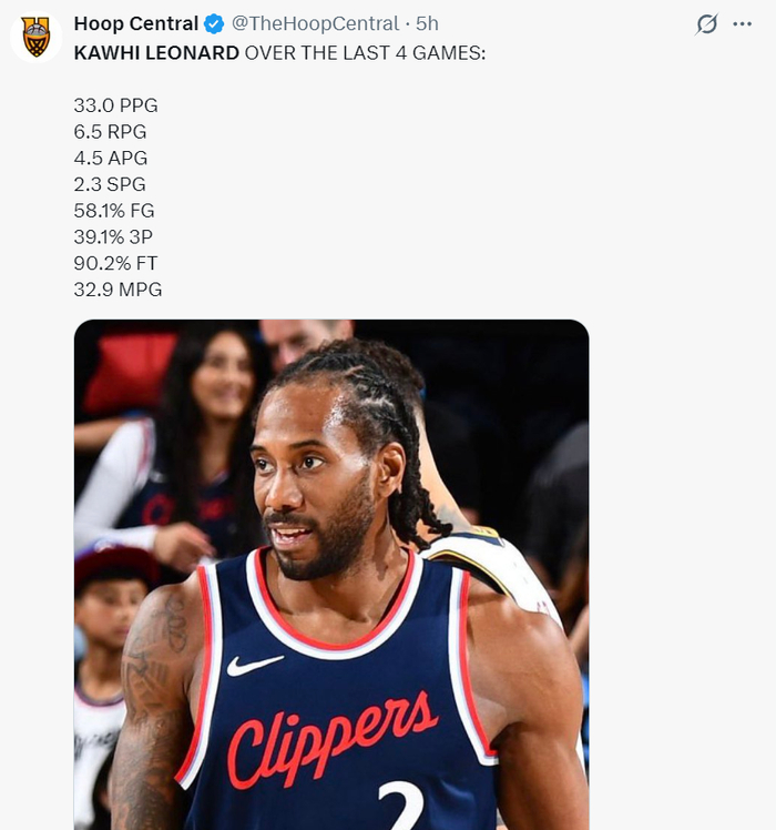 4.单场45+5+5成为快船队史第四人:弗里、保罗、乔治、小卡;
